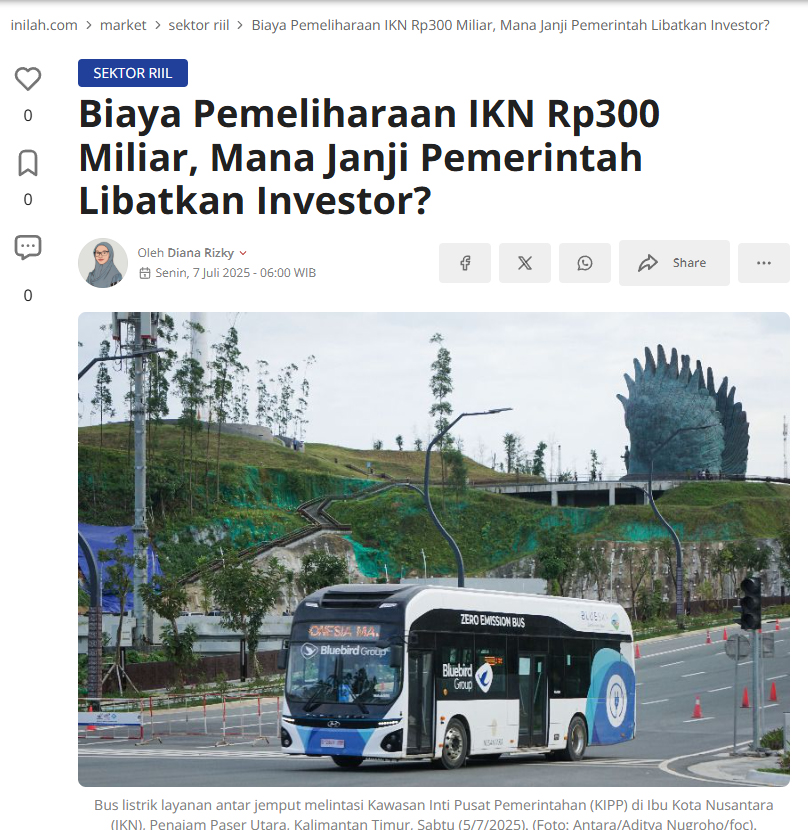 Isu menarik kali ini tentang Biaya Pemeliharaan Ibu Kota Baru Para Politikus IKN 300 Milyar yang dikaitkan dengan "Investor" sebagai "Dewa Penyelamat"...
